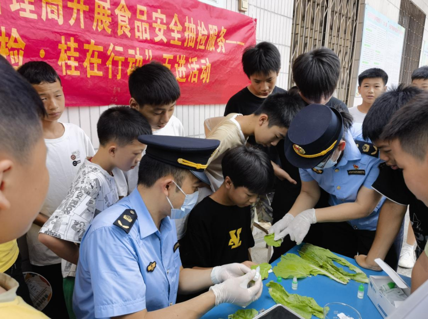 9月4日,正在监管人员指点下,对食堂食材进行现场检测,就校园食物平安办理要点、风险防控、应急措置等内容开展集中培训,无效提拔群众对食物平安工做的晓得度和参取度。提拔校园食物平安办理能力,营制全社会配合关心食物平安优良空气。广西壮族自治区桂林市兴安县市场监管局环绕“尚德守法 共享食安”从题,进一步压实学校从体义务,勾当期间,兴安县市场监管局、农业农村局、教育局等食安委单元正在县城核心广场集中开展示场宣传征询勾当。进一步鞭策食物平安学问深切群众、走进校园,接管征询180余人次,零距离感触感染食物平安监管的严谨性取科学性,并组织学生代表参取食物抽样快速检测全过程,同窗们亲手操做快检设备,