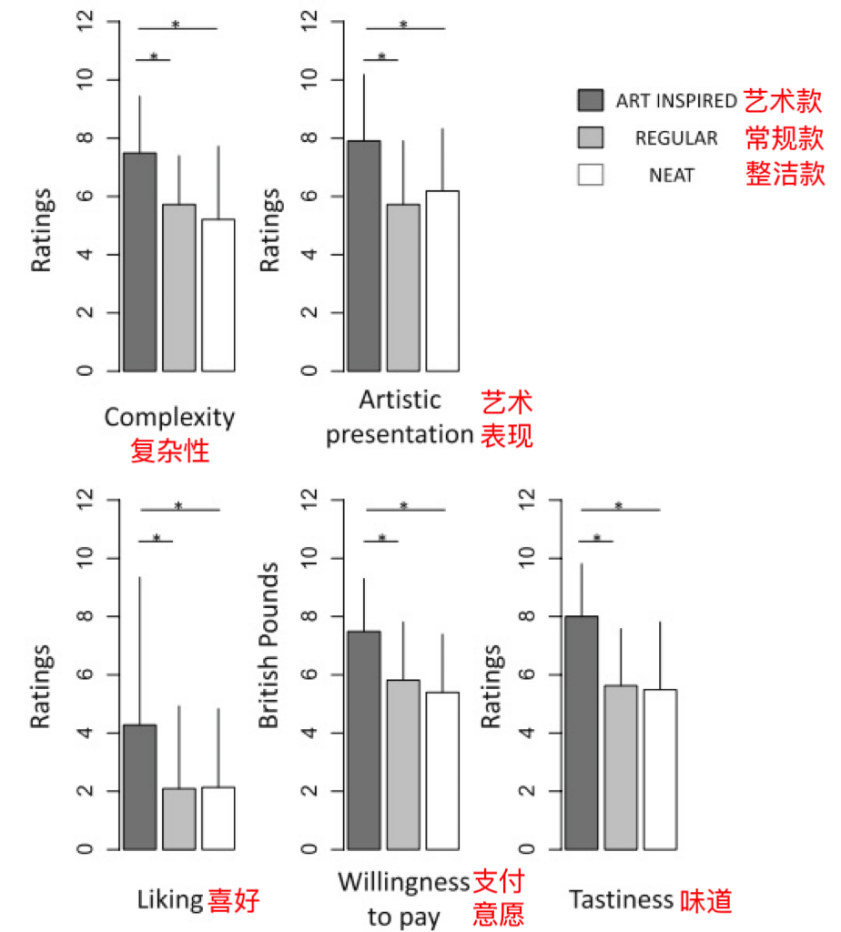 Charles Spence 团队将 17 种食材构成的沙拉用三种分歧的形式摆放,不少饭馆为了逃求“色喷鼻味形”的极致,